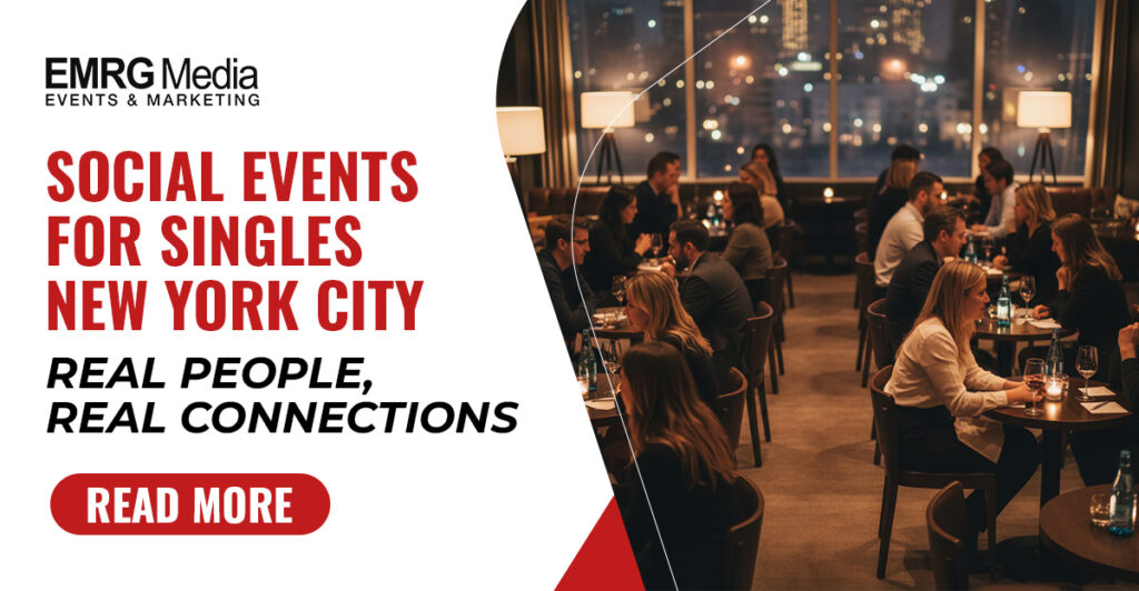 Contact EMRG Media today for signature social events for singles NYC and discover how effortless connection can feel.